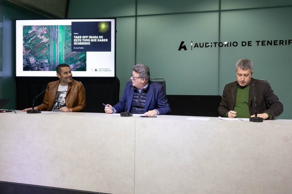 El Auditorio de Tenerife acoge esta semana el estreno de la producción Take off [Nada de esto tuvo que haber ocurrido], que parte del accidente aéreo ocurrido en el aeropuerto de Los Rodeos en 1977. Los detalles fueron ofrecidos por el consejero de Cultura del Cabildo de Tenerife, José Carlos Acha; el director artístico del Auditorio de Tenerife, José Luis Rivero, y el dramaturgo Jose Padilla, autor de la obra y director del montaje.