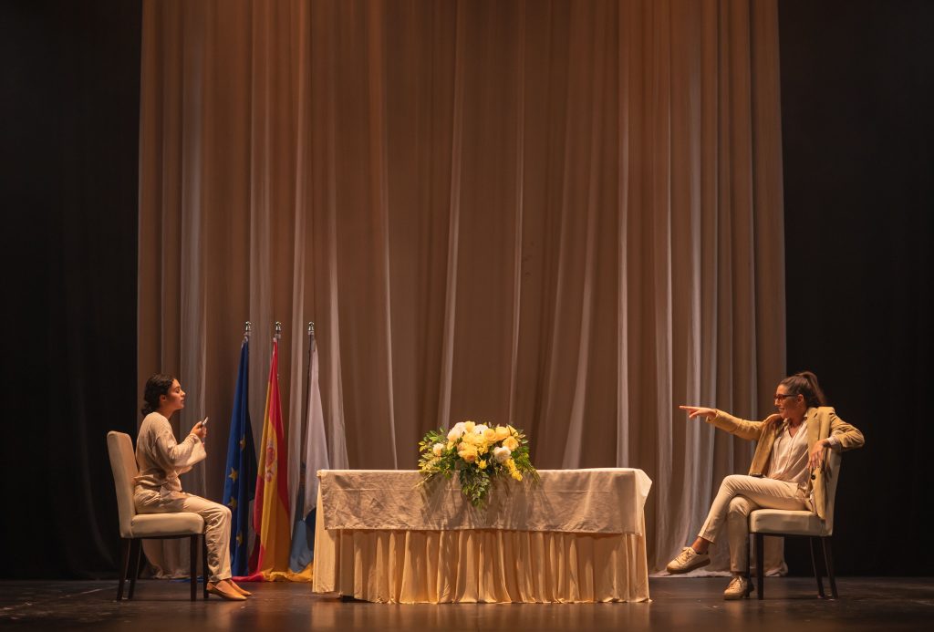María de Vigo y Erika Farcy recortan las distancias entre el cine y el teatro pues, en esta ocasión, reservan un espacio en la acción dramática en la obra para el público, que formará parte de la figuración de la obra, implicándose en la propuesta desde una mirada crítica sobre las problemáticas actuales de Canarias. Temas como la masificación turística, la precariedad y la identidad canaria contemporánea giran en torno a los personajes y al público como testigo activo.