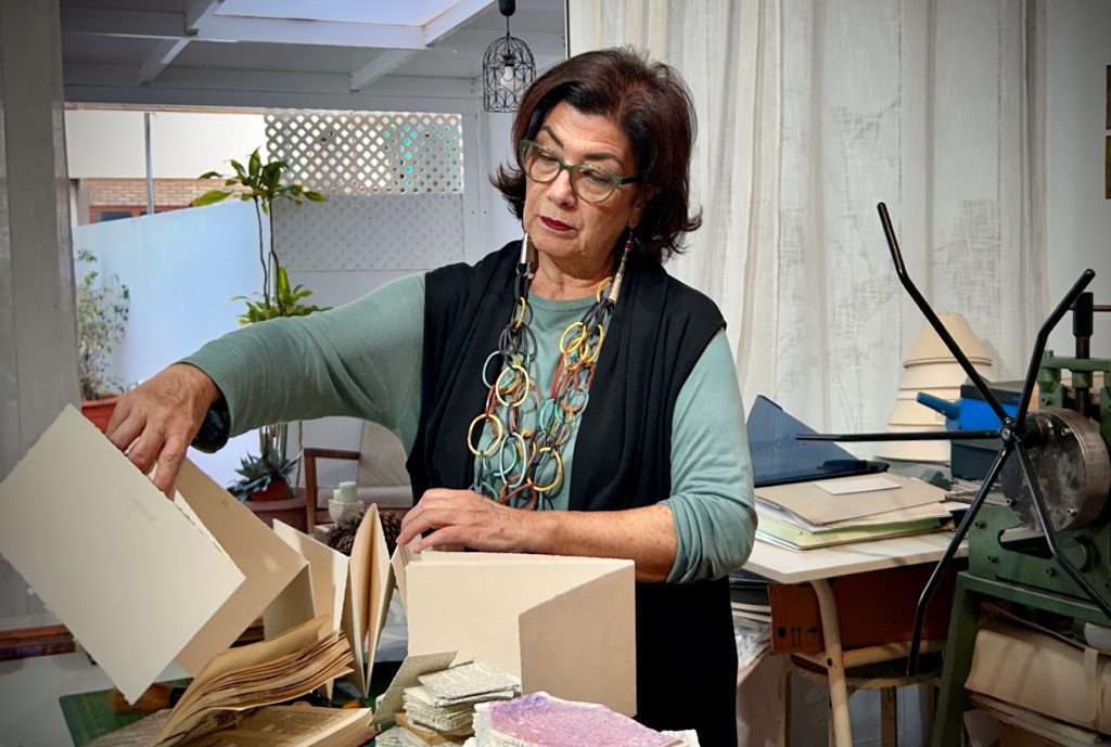 Trabaja y desarrolla la creación artística en varias vertientes: la expositiva, la divulgativa y la pedagógica, impartiendo talleres de trabajo, estampación textil, encuadernación artesanal y libros de artista.