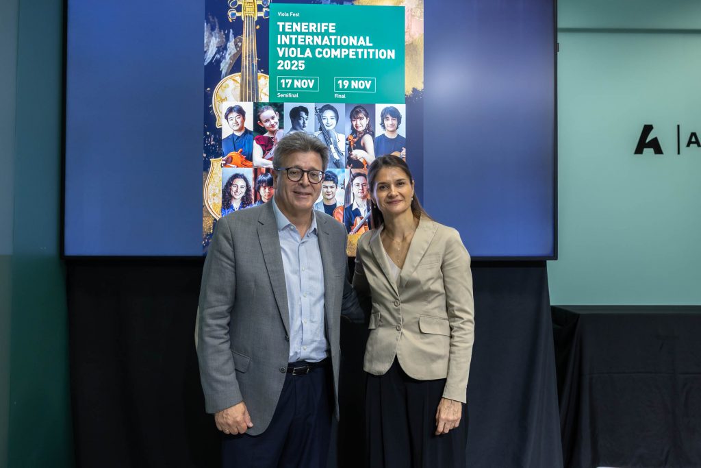 El Tenerife Viola Fest, la Asociación Cultural Resonancias y el Auditorio de Tenerife anuncian las fases finales del Tenerife International Viola Competition 2025, que se desarrollarán los días 17 y 19 en la Sala de Cámara con entrada libre hasta completar aforo. Los detalles fueron ofrecidos hoy (miércoles 12) por el consejero de Cultura del Cabildo de Tenerife, José Carlos Acha, y la directora artística de la competición, Macarena Pesutic.