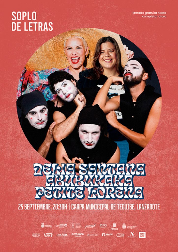 El próximo jueves, 25 de septiembre, a las 20:30 horas, el Festival Soplo de Letras presenta una nueva edición en la carpa municipal de Teguise, Lanzarote. Este evento cultural, con entrada gratuita, contará con tres de los espectáculos de humor más aclamados de las Islas Canarias a cargo de los reconocidos cómicos Petite Lorena, la compañía Abubukaka y Delia Santana.