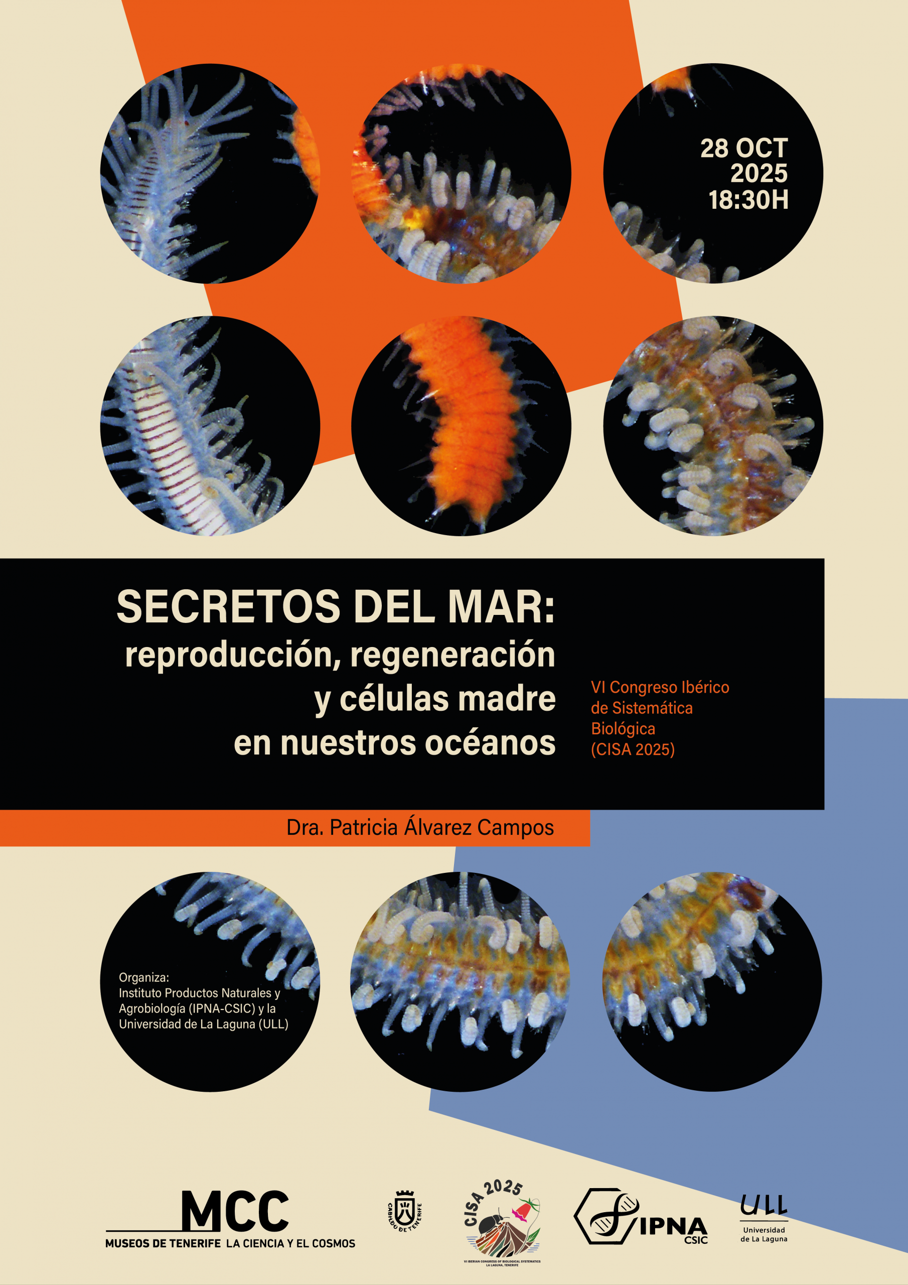 • El Museo de la Ciencia y el Cosmos acoge mañana martes, 28 de octubre, a las 18:30 horas, la charla ‘Secretos del mar: reproducción, regeneración y células madre en nuestros océanos’, dentro del VI Congreso Ibérico de Sistemática Biológica (CISA 2025)