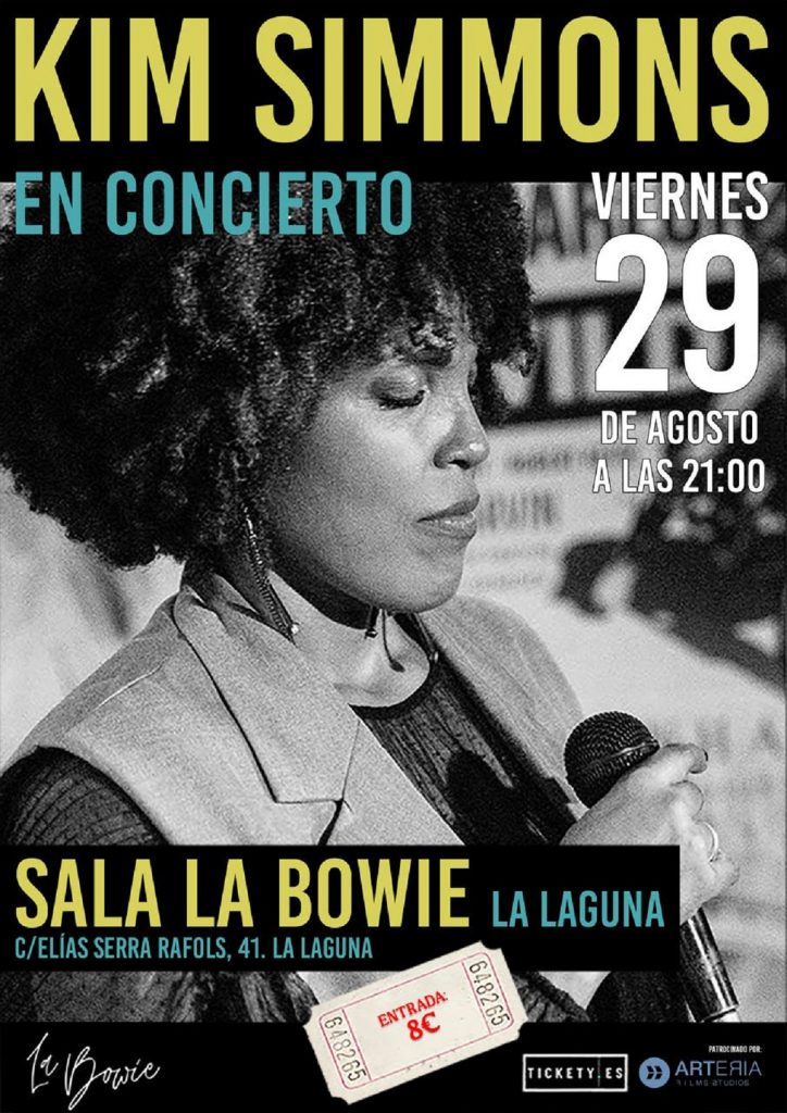 El soul de Kim Simmons llega a la sala de conciertos La Bowie, en La Laguna, el próximo sábado 29 de agosto. La cantante estrena dos temas inéditos en español y canta la banda sonora de su documental Free, salir es posible, acompañada una banda compuesta por el guitarrista napolitano Nico Amalfitano, el bajista Mon Castrillo y por Kiko Castro, en la batería, quien también es el director de esta película.
