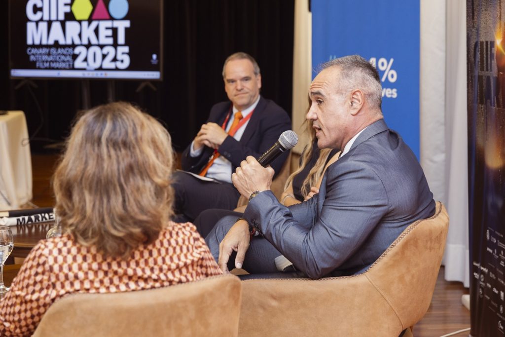• El panel abordó el impacto de la nueva Ley del Cine, la consolidación del régimen fiscal canario (REF) como motor de atracción de rodajes, el papel creciente de la banca en la financiación audiovisual y los desafíos derivados de la irrupción de la inteligencia artificial en la creación de contenidos.