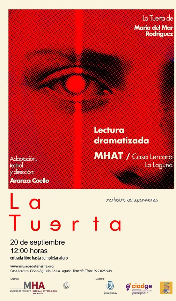 El Museo de Historia y Antropología de Tenerife (MHAT), del Cabildo de Tenerife, y en su sede en la Casa Lercaro, en La Laguna, ofrecerá el próximo sábado 20 de septiembre, a las 12:00 horas, la lectura dramatizada de ‘La Tuerta’, con entrada gratuita hasta completar aforo.