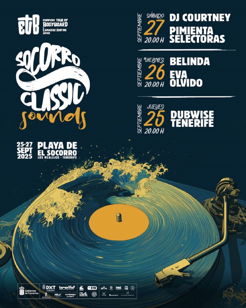 Seis DJs se hacen cargo este año del reto de llenar de música y color la playa de El Socorro (Los Realejos, Tenerife) en la segunda edición de Socorro Classic Sounds, una propuesta cultural iniciada en 2024 que se propone crear Paisajes sonoros paralelos a la celebración de la prueba del European Tour of Bodyboard (ETB) 2025 en esta playa del norte de Tenerife.