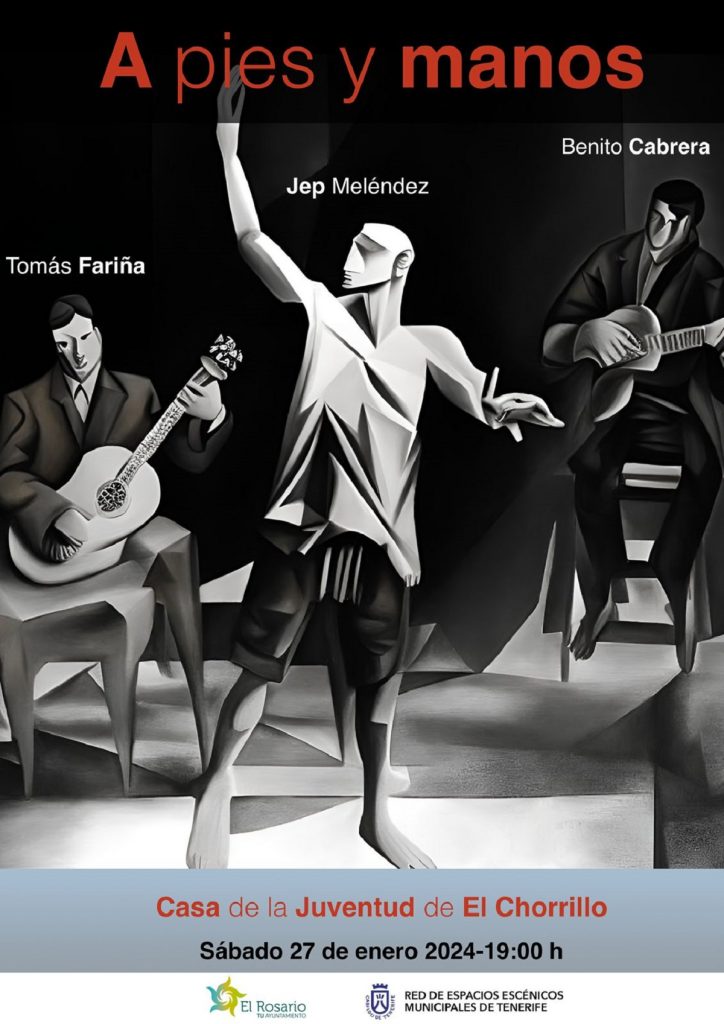 El Auditorio de la Casa de la Juventud de El Chorrillo acoge el espectáculo “A pies y manos”, propuesta escénica de los músicos Benito Cabrera y Tomás Fariña y el bailarín Jep Meléndez. La obra, que se adentra en la tradición del Archipiélago a través de la música y la danza, llega a El Rosario el próximo sábado 27 de enero, a partir de las 19:00 horas. Esta propuesta es gratuita y cuenta con el apoyo de la Red de Espacios Escénicos Municipales de Tenerife. Para reservar una entrada hay que llamar a la Casa de la Cultura al 922 01 01 62 o a la Casa de la Juventud al 922 68 46 99.