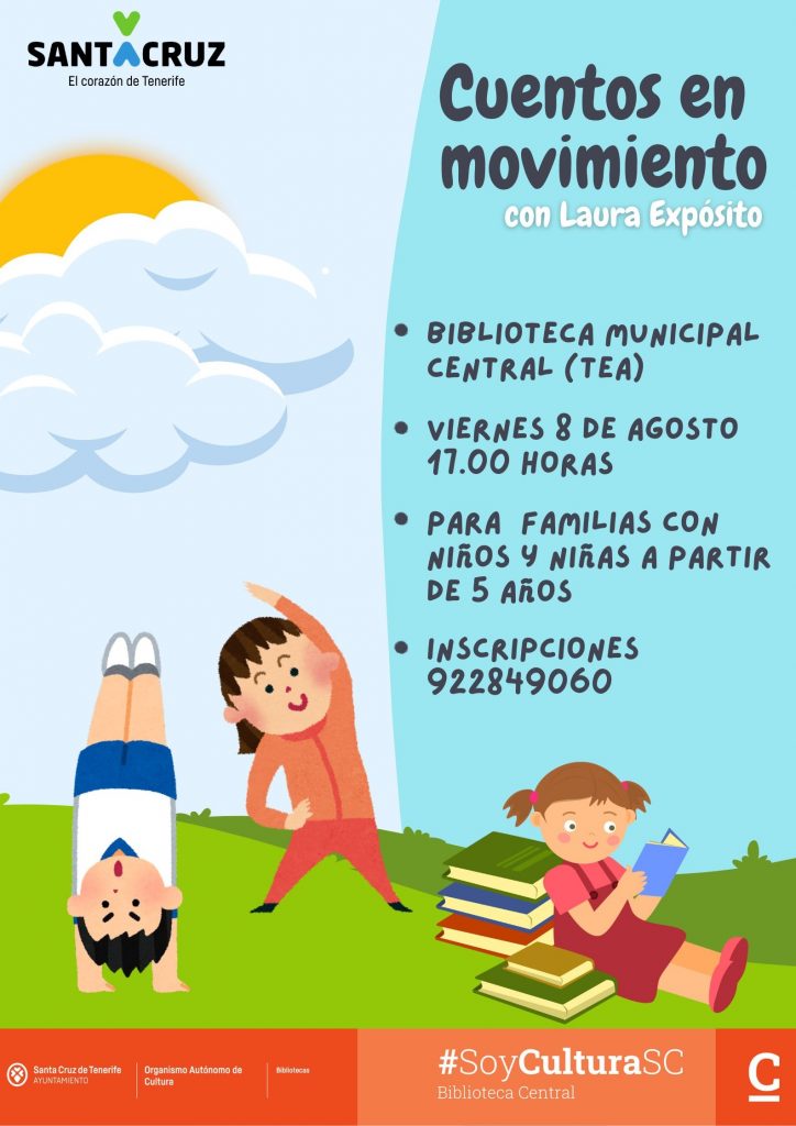 El viernes 8 de agosto, a las 17.00 horas, se celebra una nueva sesión de verano familiar de “Cuentos en movimiento” en la Biblioteca Municipal Central, una actividad destinada a las familias a cargo de la narradora oral e instructora de yoga Laura Expósito. “Cuentos en movimiento” es un novedoso proyecto de distintas sesiones de narración oral donde el relato de cuentos va en paralelo o acompañado de movimiento para así realizar cuentos escenificados, representados, vivenciados, muy jugados y expresados de manera individual y colectiva a un nivel físico.