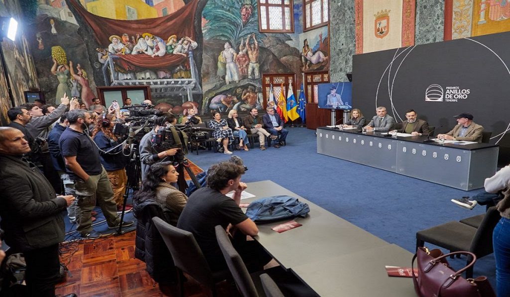 El Salón Noble del Cabildo de Tenerife ha acogido la presentación de la I edición de los Premios Anillos de Oro, que promovidos por el Círculo de Profesionales de las Series Españolas, acontecerán el 20 de junio en el Recinto Ferial de la ciudad tinerfeña. La convocatoria ha contado con la presencia y participación de Lope Afonso, vicepresidente del Cabildo de Tenerife; Manuel Domínguez, vicepresidente del Gobierno de Canarias; y Carmen Pérez, concejal responsable de la Sociedad de Desarrollo del Ayuntamiento de Santa Cruz de Tenerife; como representantes de las tres instituciones patrocinadoras de una cita que viene a reconocer a lo mejor de las series de nuestro país. Junto a ellos ha estado el guionista y director Joan Álvarez, miembro del Comité del CPSE y presidente de los Premios Anillos de Oro.