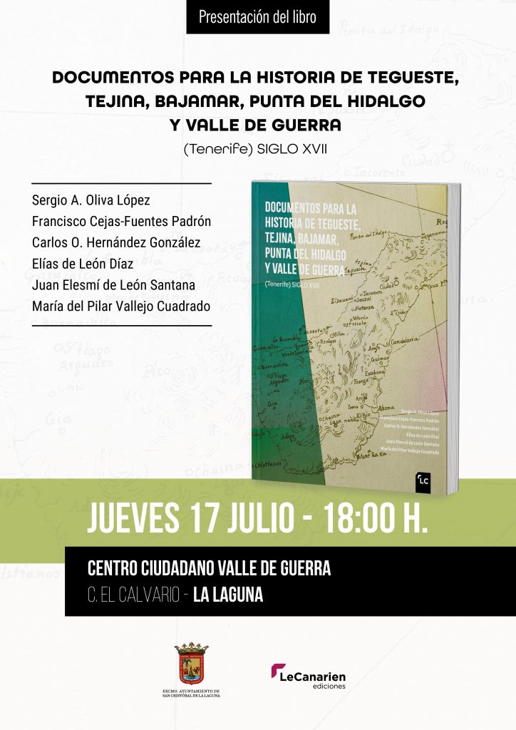 Este trabajo colectivo, editado por Le Canarien Ediciones y que cuenta con la colaboración de la concejalía de Patrimonio Cultural de La Laguna, ha contado con la participación de Sergio Oliva, Francisco Cejas-Fuentes, Carlos Hernández, Elías de León, Juan Elesmí de León y María del Pilar Vallejo. Además, la obra ha sido prologada por el profesor de Historia Medieval de la Universidad de La Laguna y director del Instituto de Estudios Canarios, Roberto J. González Zalacaín.