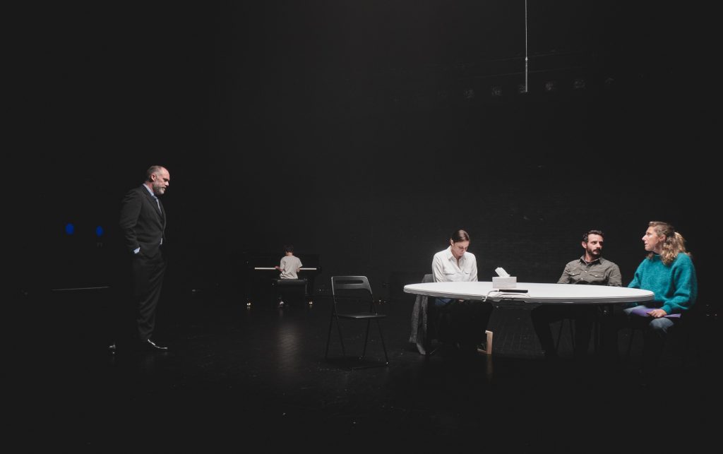 Garrido Sanz es también intérprete de esta propuesta escénica junto a Esther Ortega, Cecilia Freire, Jorge Kent, Ignacio Mateos y Abel de la Fuente. La película que inspira esta obra de teatro, Mass, fue escrita y dirigida por Fran Kranz en 2019, ganadora del Premio del Jurado Joven en el Festival de Cine de San Sebastián en 2021, entre muchos otros reconocimientos.